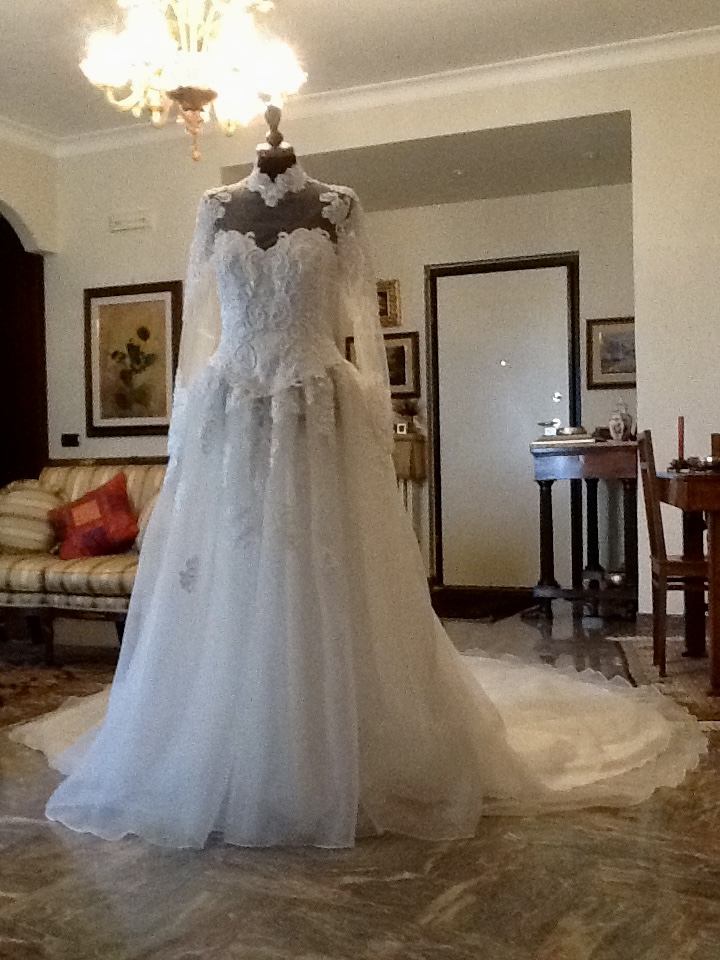 Taglia 44 · Colore Avorio · Tessuto Organza · Sagoma Principessa · Scollatura Cuore · Nuovo · Ritocchi? No