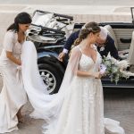 velo sulle spalle coordinato all’abito (visibile in foto)