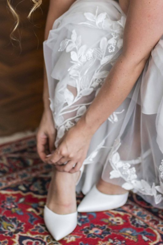 Il corpetto con scollo a V davanti e dietro valorizza il décolleté senza essere eccessivo, mentre le spalline ricamate donano eleganza e sostegno.