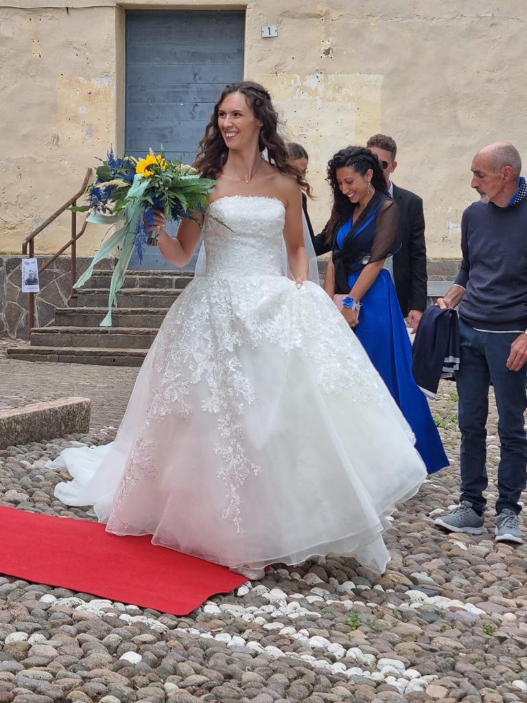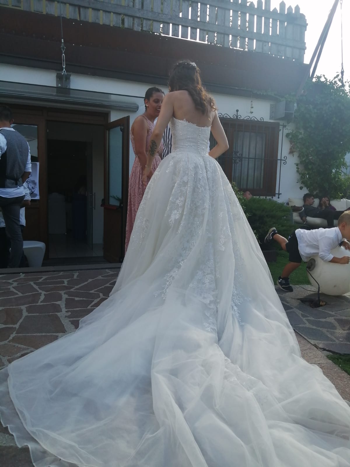 Taglia 40 · Colore Bianco · Tessuto Tulle · Sagoma Principessa · Scollatura Altro · Usato · Ritocchi? SìStilista / Marca