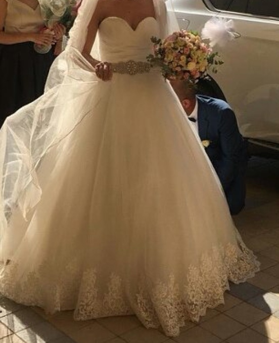 Taglia 42 · Colore Avorio · Tessuto Tulle · Sagoma Principessa · Scollatura Cuore · Usato · Ritocchi? Sì